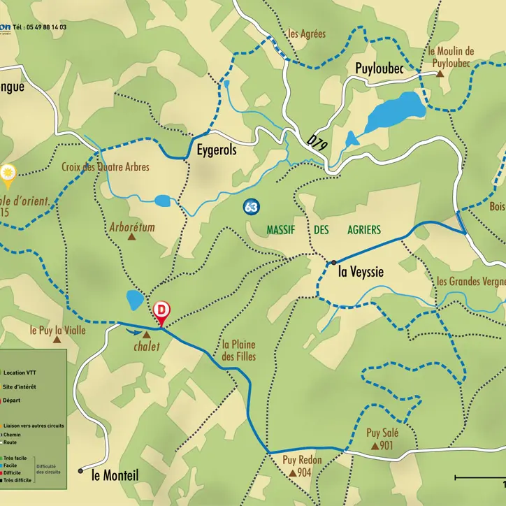 Espace VTT Haute-Corrèze, circuit VTT n°62 (17 km) au départ du pavillon de l'Office de tourisme à Merlines. Avec plus de 1000 kilomètres de circuits balisés au départ de 17 communes, l’Espace VTT Haute-Corrèze est le plus grand réseau labellisé FFCT de France. Les 50 circuits familiaux ou réservés à des pratiquants avertis, ont une longueur de 4 à 51 km avec des dénivelés de 10 à plus de 1000 mètres. Paysages à vous couper le souffle, points de vue sur les Monts d’Auvergne et du Sancy, détours par les sites touristiques naturels majeurs du Plateau de Millevaches : tourbières du Longeyroux et de Négarioux, gorges du Chavanon et de la Diège… Des liaisons entre les circuits permettent de réaliser des étapes avec des points de départ et d’arrivée différents. Des parcours sur plusieurs jours sont possibles avec des solutions d’hébergement à proximité (campings, gîtes, chambres d’hôtes, villa